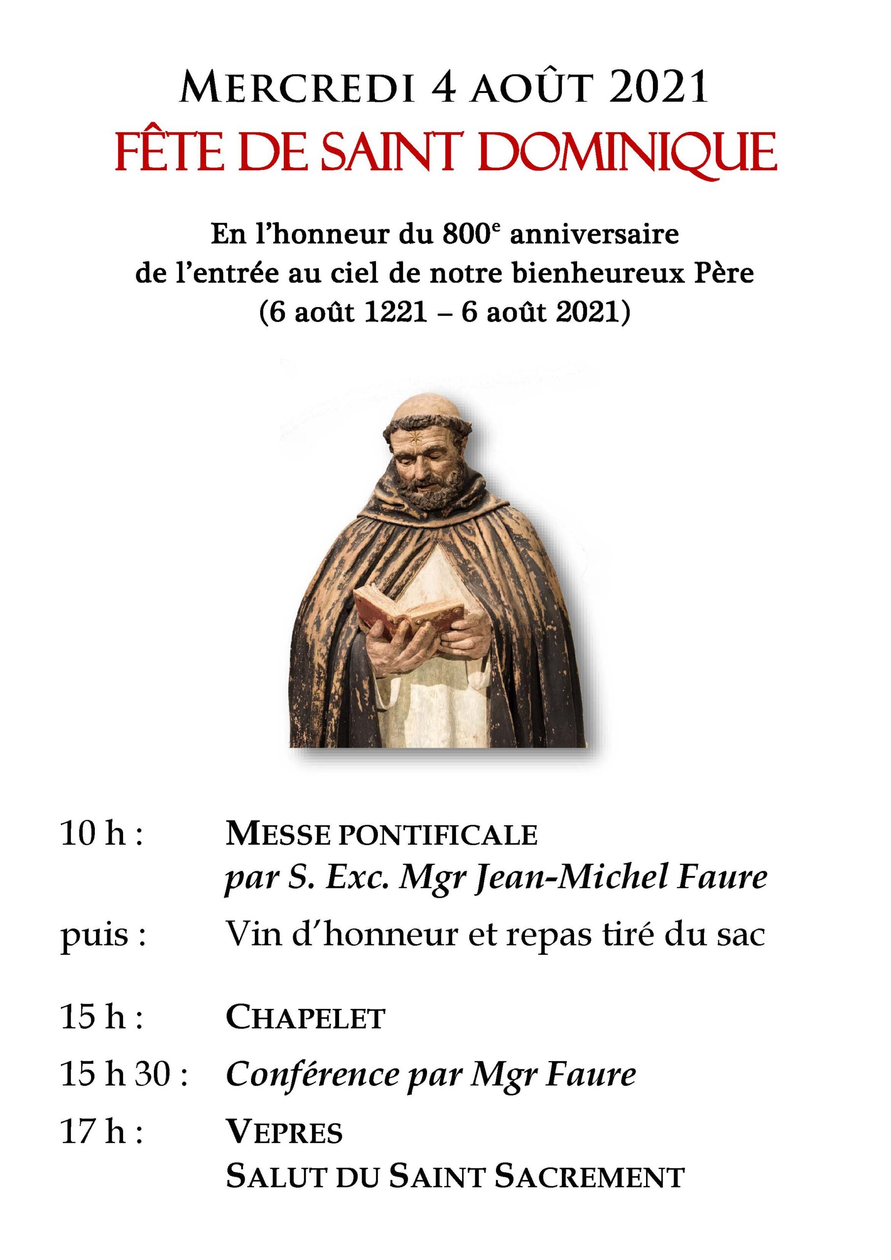 Ce mercredi 4 août, 800e anniversaire de l’entrée au ciel de notre bienheureux Père saint Dominique