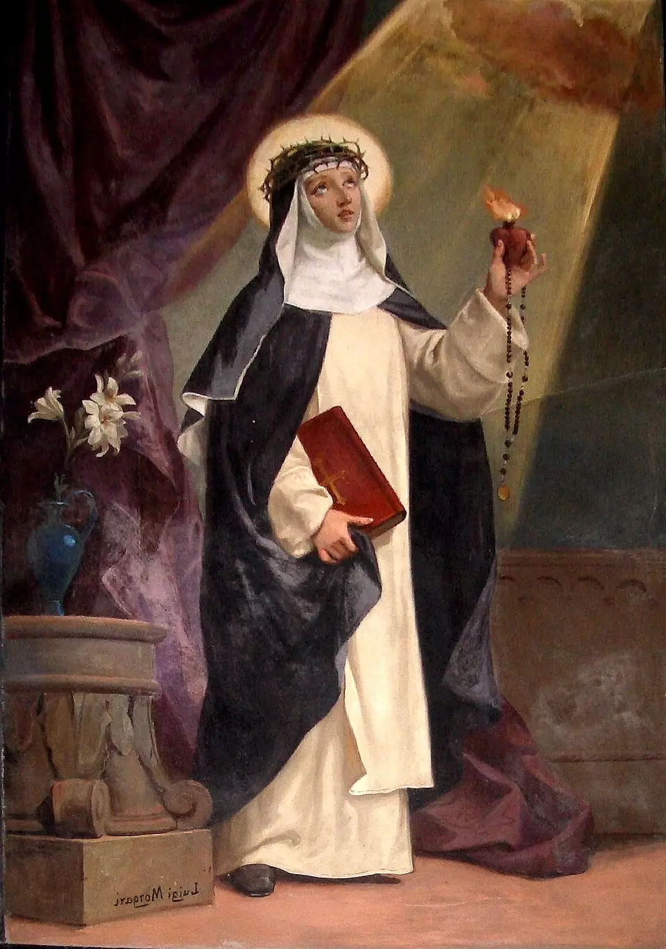 Enrichie de l’esprit de prophétie, on dit qu’elle apprit à l’avance, par une révélation divine, les guerres et les calamités qui allaient fondre sur l’Italie ; sa mort aussi lui fut révélée par le ciel trois ans à l’avance. Épuisée par l’âge et comblée de bonnes œuvres, fortifiée par les divins Sacrements, après avoir supplié Dieu de tout son cœur pour l’Ordre des Frères Prêcheurs et pour sa patrie bien-aimée, pendant qu’elle achevait la récitation du Psaume de David In te Domine speravi, à ces mots Entre vos mains je remets mon esprit, elle s’endormit dans le baiser du Seigneur, en l’an 1503. Sa dépouille sacrée, exposée pendant trois jours, ne cessa de répandre un parfum très suave. Des documents anciens attestent qu’elle fut glorifiée par de nombreux miracles. Aussitôt après les funérailles, la bienheureuse fut l’objet d’un culte religieux, des hommes de tout rang accourant à l’autel consacré à Dieu en son honneur comme à l’asile le plus sûr de la patrie.