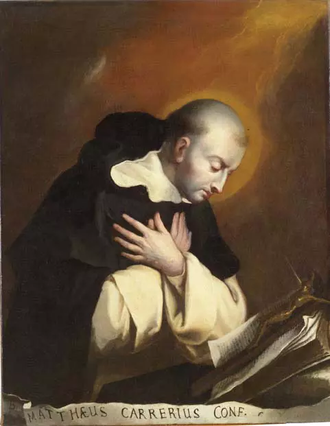 Matthieu, de la noble famille des Carreri, naquit à Mantoue de parents vertueux. Entré tout jeune chez les Frères Prêcheurs dans sa ville natale, il adopta une règle de vie très sévère. Bien que, sur la volonté de ses supérieurs, il l’ait parfois quelque peu adoucie, il fut cependant, toute sa vie, d’une étonnante sobriété dans le boire et le manger ; si attaché également au silence et à la solitude que, dans toute la mesure du possible, il ne quittait guère sa cellule et ne parlait que de Dieu et des choses divines. Il cultiva d’une manière admirable la pureté du corps et de l’âme ; il excella plus particulièrement dans l’humilité, éprouvant une vive horreur pour la vaine gloire, qu’il avait coutume d’appeler le vice subtil. En s’acquittant de l’office divin, il brûlait d’une piété si ardente qu’il paraissait souvent ravi en extase.