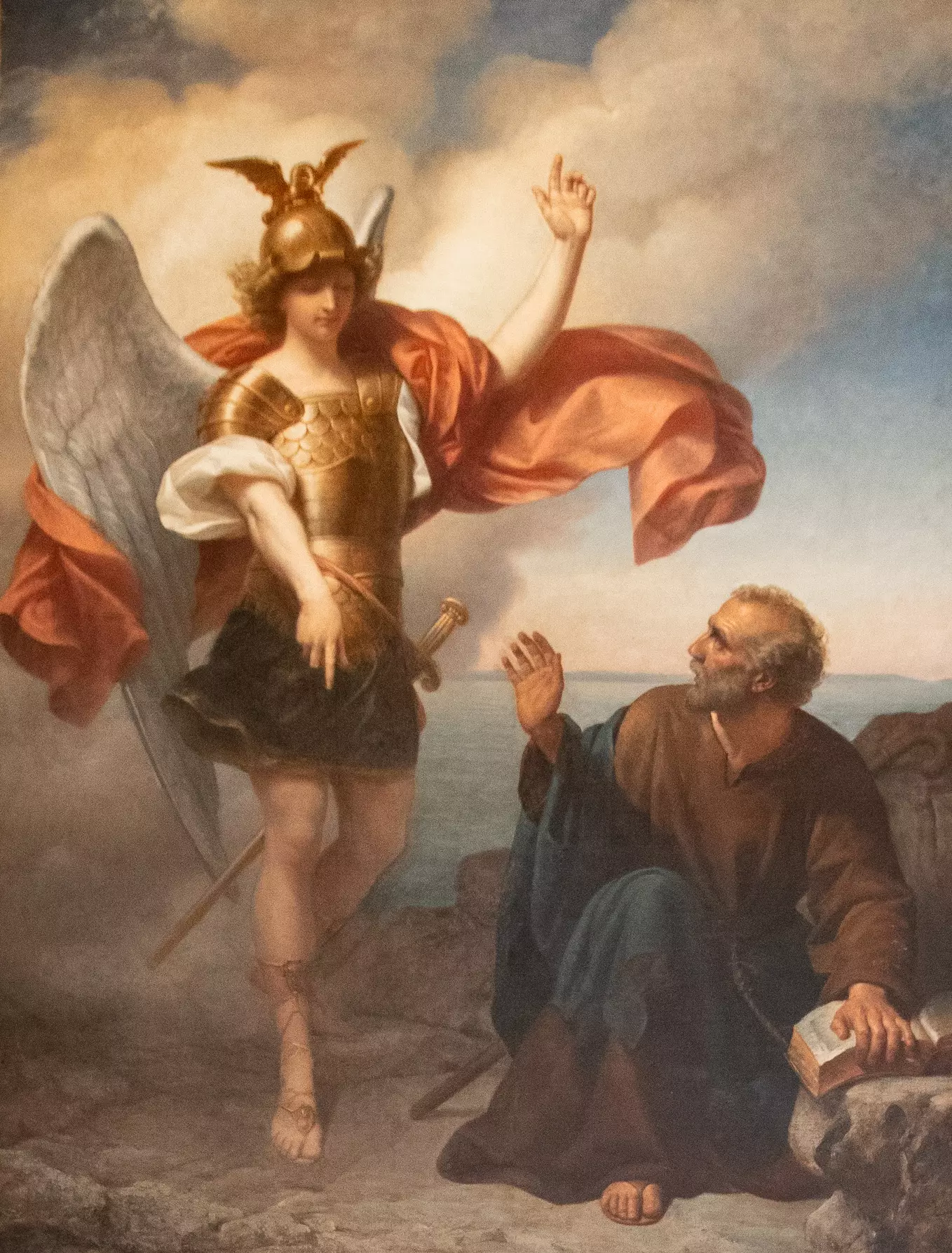 On voit la scène. Aux disciples que l’ambition humaine tourmente encore Jésus ne répond pas directement. Il appelle un enfant, il le place au milieu d’eux, il leur dit : Regardez bien ce tout petit, si vous voulez être grands dans le royaume des Cieux, il faut vous faire tout petits comme lui. Leçon profonde d’humilité, qui nous montre dans la splendeur du ciel la place de Saint Michel, le prince des humbles. Le démon, l’ange révolté veut se grandir à l’égal de Dieu et il tombe écrasé par sa propre folie ; Michel avoue son propre néant et il monte surélevé par sa propre vérité. Aux orgueilleux, la honte ; aux humbles, la gloire.