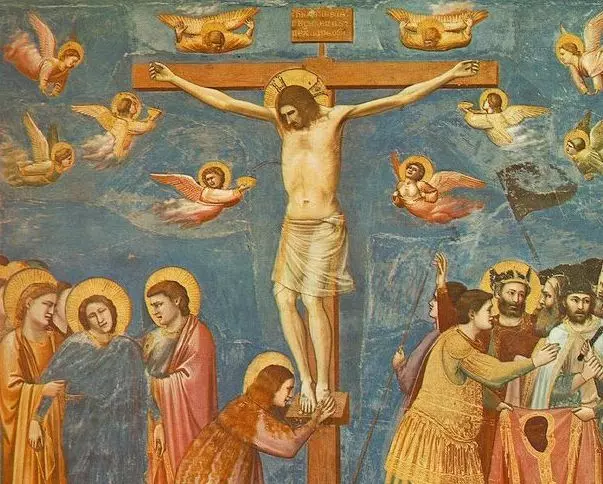 Évangile selon saint Jean, c. 19. : « En ce temps-là Jésus ayant reçu le vinaigre dit : Tout est consommé. Inclinant la tête, il rendit l’âme. Or les Juifs (on était au vendredi de la Préparation pascale) ne voulant pas que les corps restassent en croix le jour du Sabbat, car ce jour du Sabbat était très solennel, prièrent Pilate de faire briser les jambes des crucifiés et de les enlever. Des soldats vinrent donc et ils brisèrent les jambes du premier et de l’autre qui avait été crucifié avec lui. Mais quand ils approchèrent de Jésus et qu’ils virent qu’il était déjà mort, ils ne lui brisèrent pas les jambes, mais l’un des soldats lui ouvrit le côté de la lance et il en sortit aussitôt du sang et de l’eau. Celui qui l’a vu en rend témoignage et son témoignage est vrai. »