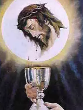 Le Sang répandu pour nous sur la croix, nous le possédons, il est entre nos mains, comme le corps meurtri qui était cloué sur le bois. Ce corps et ce sang n’ont pas quitté la terre. Faites- le en souvenir de moi, dit le Maître, c’est-à-dire par ma puissance divine, maître que je suis de tout l’être des créatures, faites comme moi, dites sur le pain : ceci est mon corps, et ce sera mon corps à moi ; dites sur le vin : ceci est le calice de mon sang, et ce sera mon sang à moi. Puis, prenez, mangez et buvez. Je demeure avec vous sur terre jusqu’au dernier jour. Trésor inestimable, ce corps et ce sang de Jésus, qui sont à nous dans la Sainte Eucharistie.