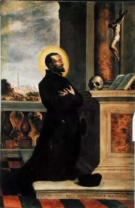 Oraison : « Dieu, qui avez accordé au bienheureux Gaétan, votre Confesseur, la grâce d’imiter la manière de vivre de vos apôtres, accordez-nous, par son intercession et son exemple, d’avoir toujours confiance en vous et de désirer seulement les biens célestes ».