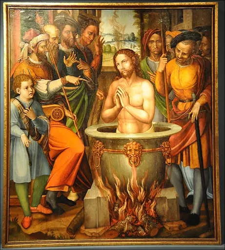 Pauvre Jean ! Il saura un jour. Le Maître lui laisse entrevoir les souffrances qui lui sont réservées. Avant de s’asseoir à sa droite ou à sa gauche, Jean devra souffrir, mais alors il aura vu Jésus sur sa croix, il aura assisté à son agonie et ses yeux seront ouverts. Quand Domitien le fait mettre dans une chaudière d’huile bouillante, devant la Porte Latine, Jean ne défaille pas. La pensée de Jésus domine cette épreuve que Jésus lui- même adoucit pour son ami.