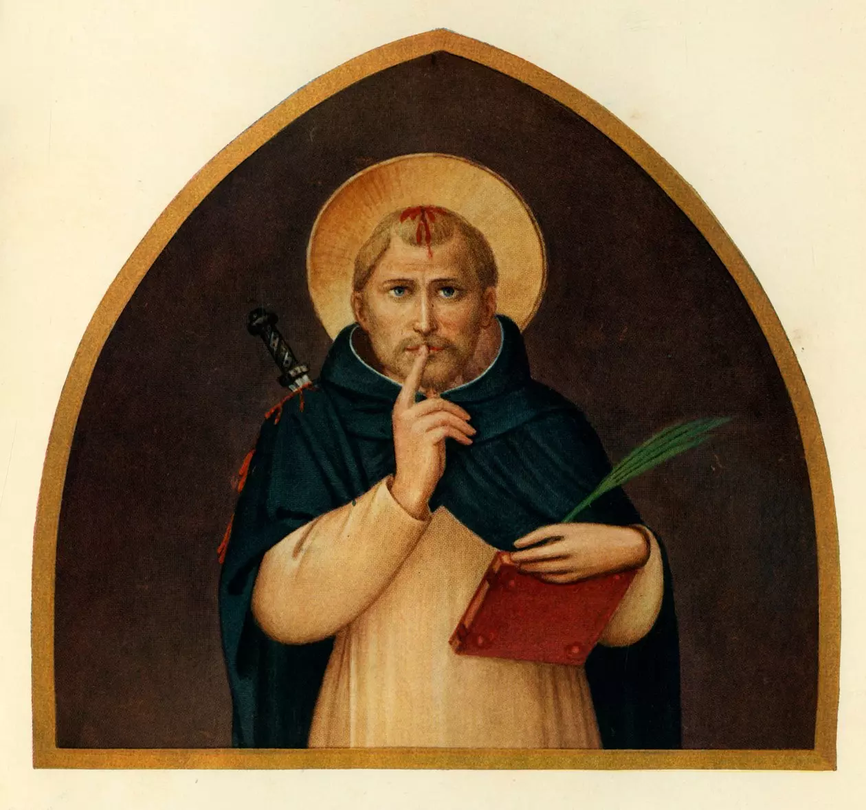 Oraison : « Accordez-nous, Dieu tout-puissant, que nous soyons vraiment dévoués à la foi du bienheureux Pierre, votre martyr, qui, pour la propagation de cette même foi, a mérité de recevoir la palme du martyre. »