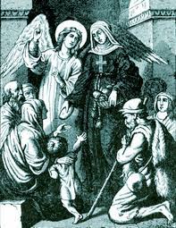 A son exemple, ayons pour la présence de notre Ange gardien le plus grand respect et pour sa bonté, sa vigilance, la plus entière confiance. Le négliger, c’est négliger un des secours les plus puissants mis à notre portée officiellement par la Providence. Ce n’est ni un être inutile, ni un être indifférent pour nous. Lui, il sait la mission que Dieu lui a confiée en lui confiant notre âme et notre corps. Il est avec nous, il veille sur nous, il nous protège, il nous pousse vers Dieu, même quand nous ne pensons pas à lui. Que serait-ce si nous avions des rapports fréquents, intimes avec lui ? Que Françoise nous donne ce sens chrétien, qui comprend et utilise la mission de notre Ange gardien.