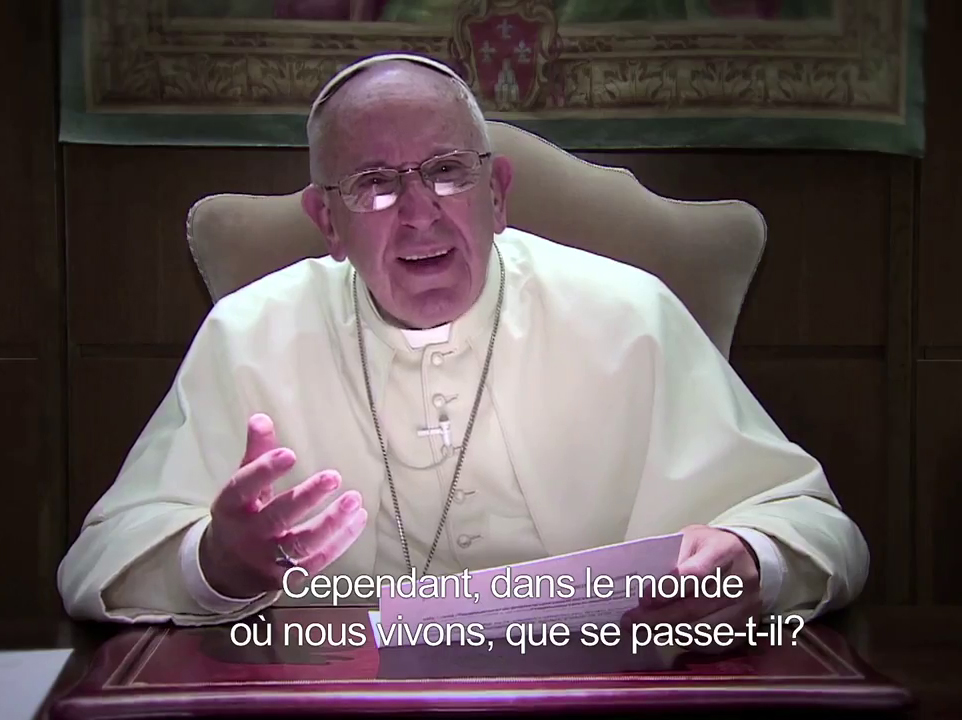 « Croyants et non croyants nous sommes d’accord pour dire que la terre est un héritage commun, dont les fruits doivent profiter à tous. Cependant, dans le monde où nous vivons, que se passe-t-il ? Le lien entre la pauvreté et la fragilité de la planète requiert une autre manière de conduire l’économie et le progrès, qui fasse advenir un nouveau style de vie. Parce que nous avons besoin d’une conversion qui nous unisse tous, de nous libérer de l’esclavage du consumérisme. Ce mois-ci, je te confie spécialement l’intention que voici : que nous prenions soin de la Création, reçue comme un don gratuit, en la cultivant et la protégeant pour les générations futures. Prendre soin de notre maison commune. » (www.youtube.com)