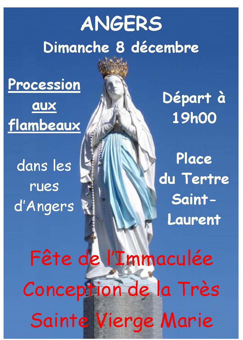 Procession en l’honneur de l’Immaculée Conception dans les rues d’Angers le 8 décembre
